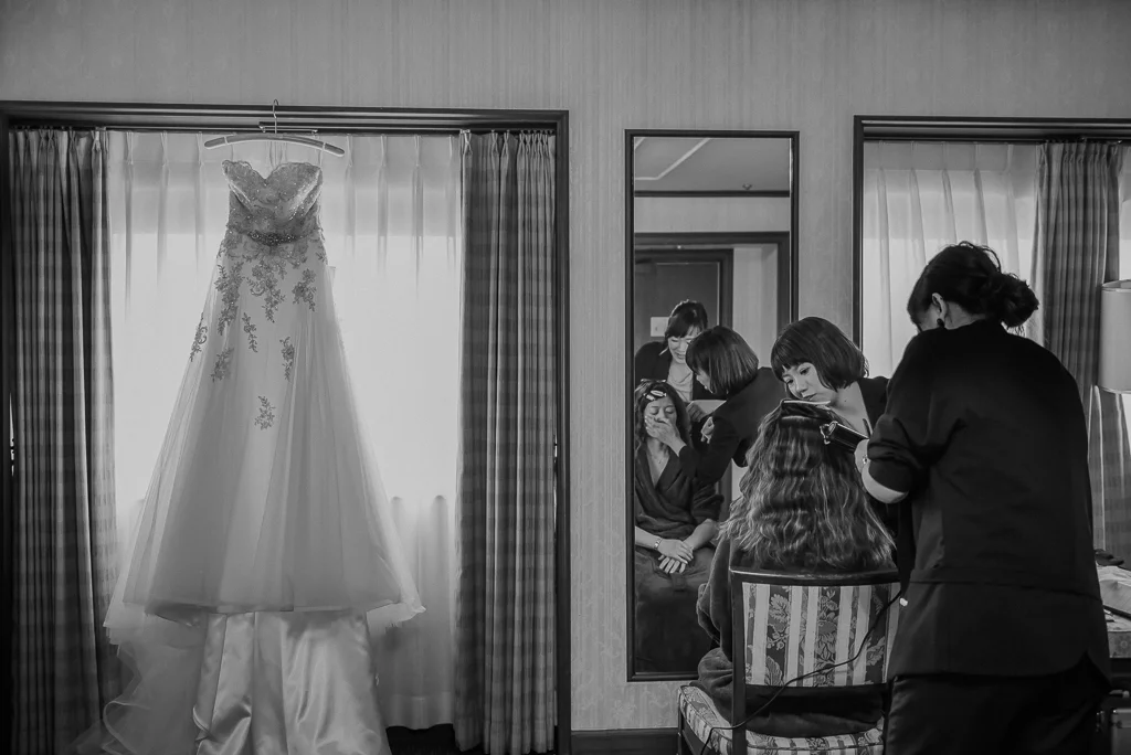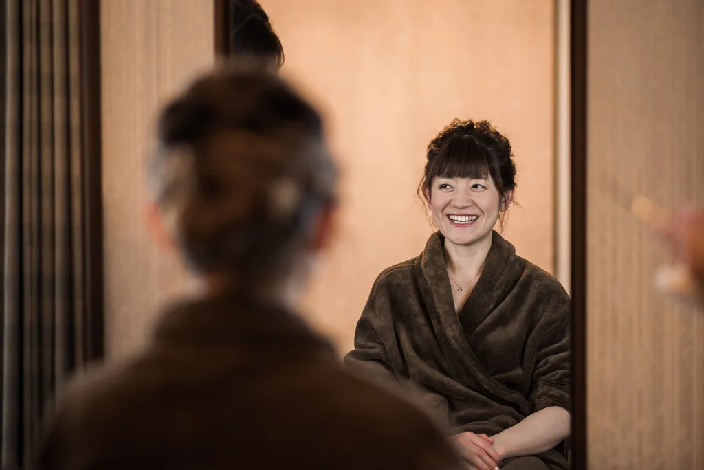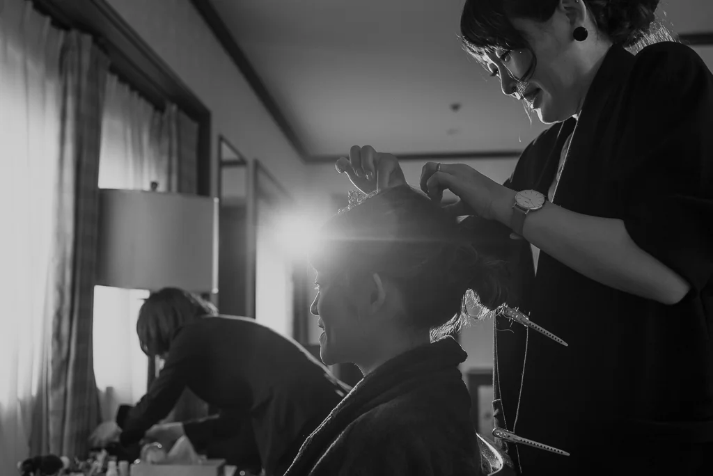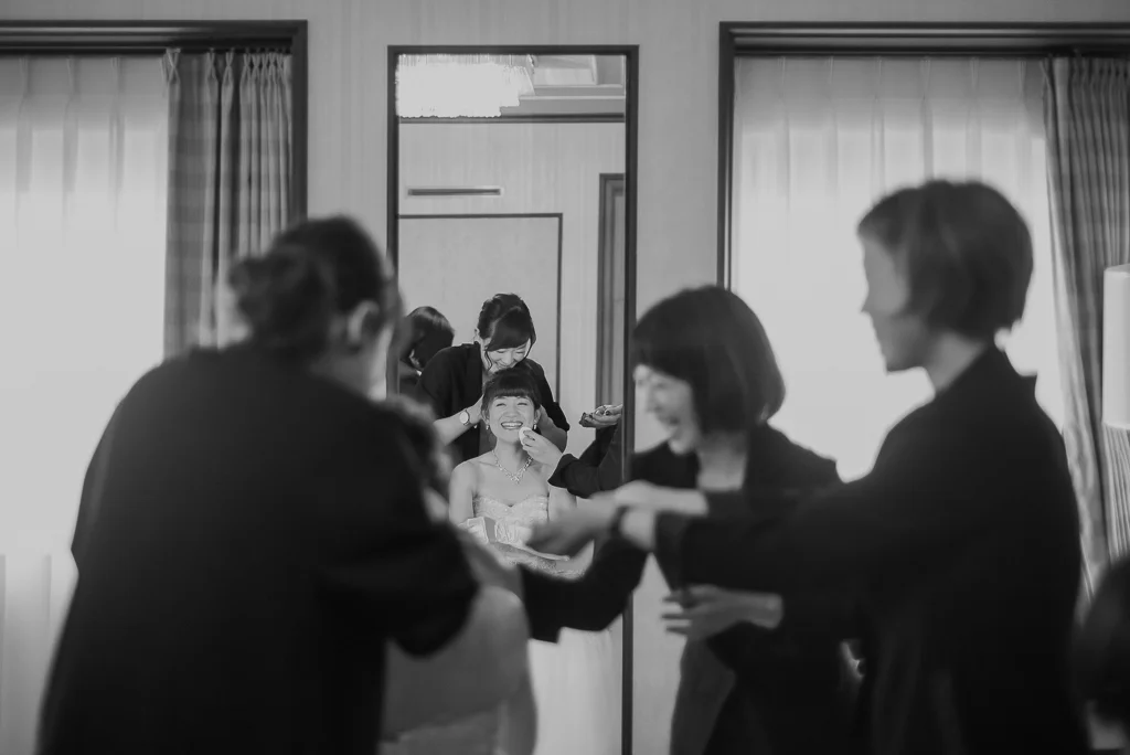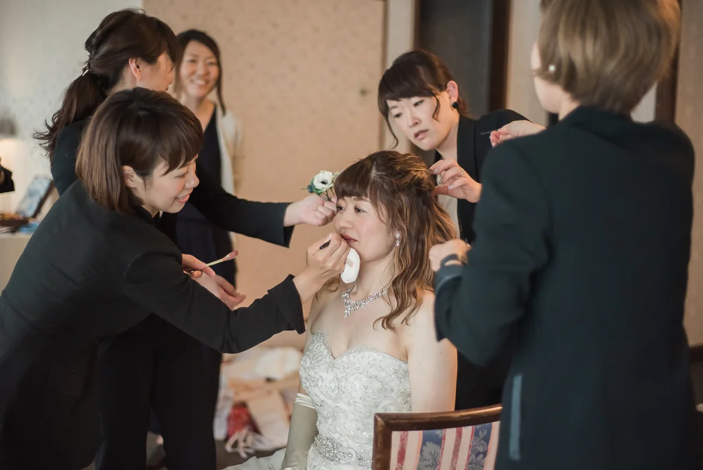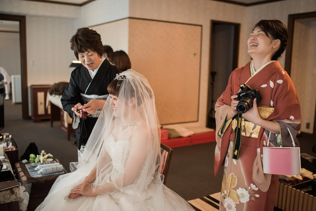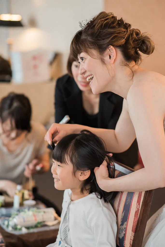花嫁の佐知子さんは私の前撮り撮影に一緒に仕事している美容師さんです。自分のウェディングパーティーのヘアメイクも佐知子さんにお願いしました。大事な結婚式を撮影させていただいて、本当に嬉しかったです。