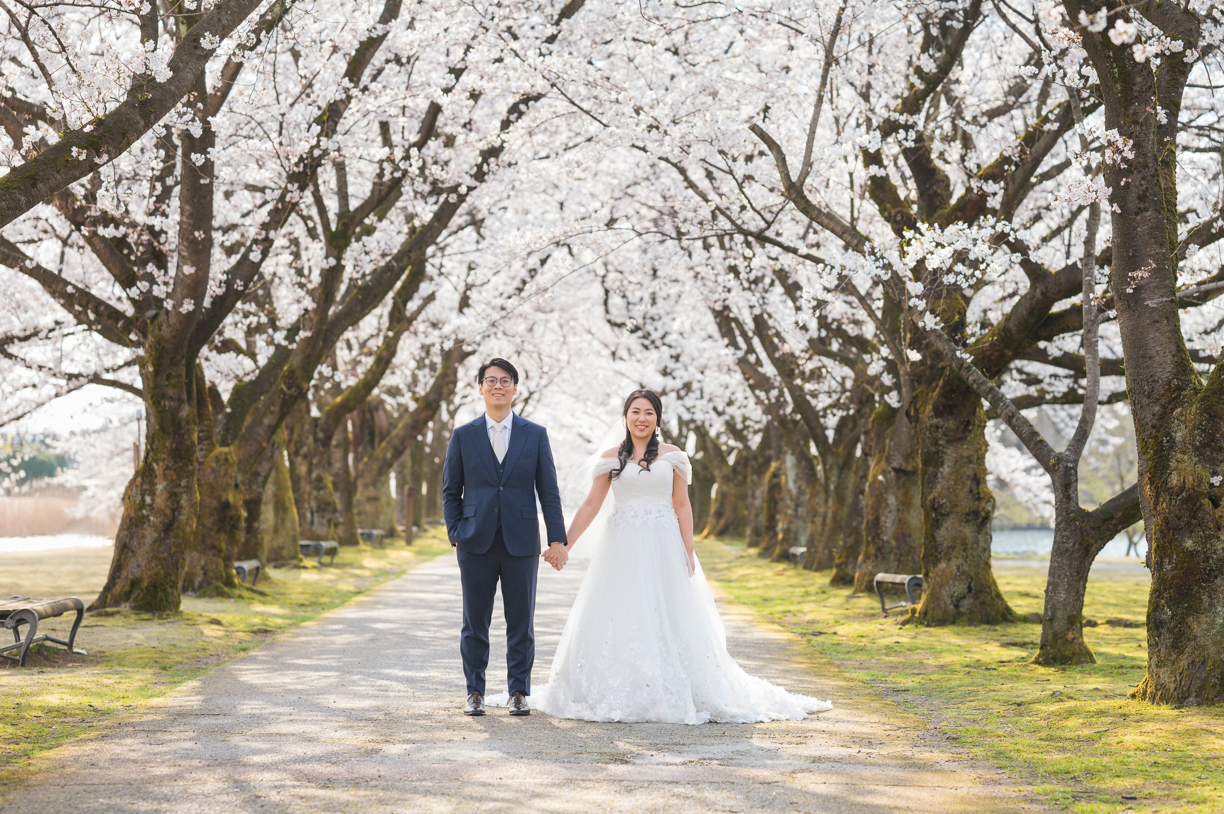 Spring is one of the best seasons for a prewedding photo shoot in Toyama City. When cherry blossoms are in full bloom, the city feels fresh and calm. This shoot took place on a clear spring day at three charming locations: Toyama Botanical Garden, old streets of Yatsuo and another secret cherry blossom of mine.