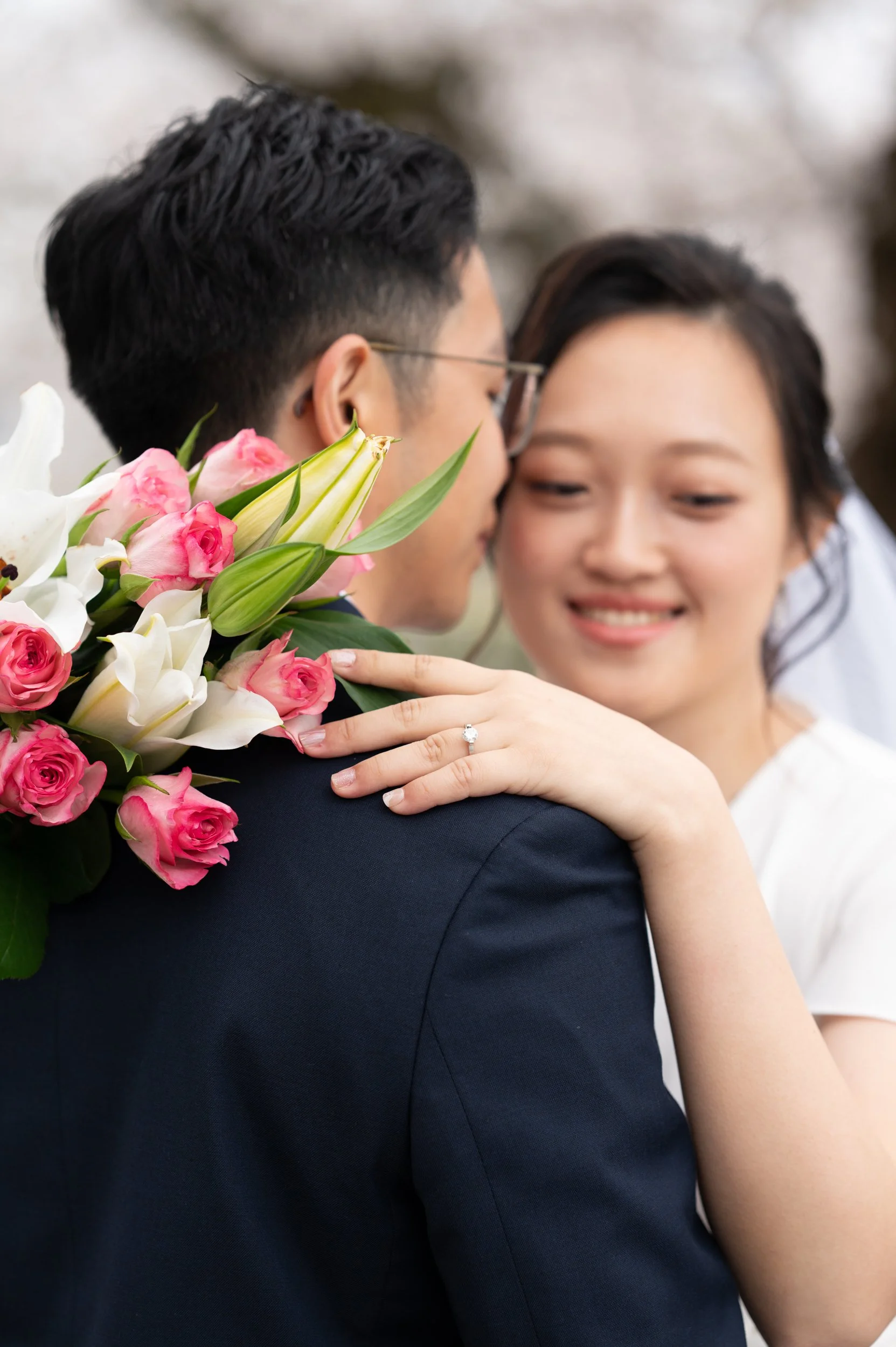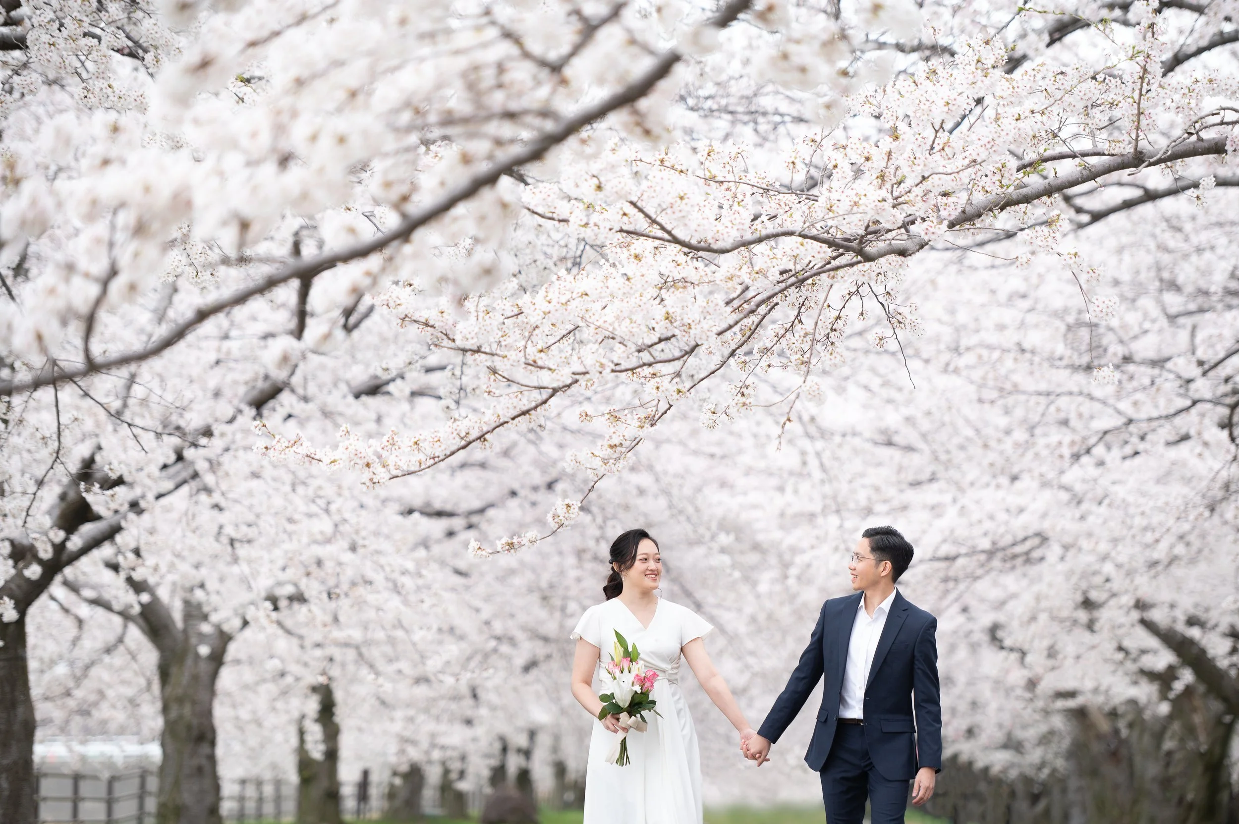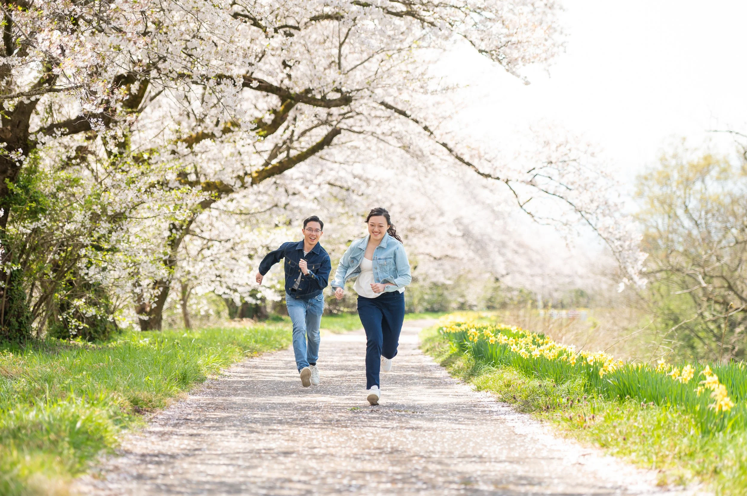 Toyama Prefecture is an ideal location for a pre-wedding photo shoot that feels natural, relaxed, and meaningful. The scenery came together beautifully—cherry blossoms in full bloom, colorful tulip fields, distant mountains, —creating a perfect setting to capture a couple truly in love.